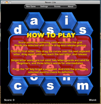 Neven Lite(ネーベンライト)は、ランダムなアルファベットの中から単語を探すパズルゲームです。蜂の巣上に並べられたアルファベットのパネルをつないで、意味のある単語を作っていきます。正解すると得点となり、どれだけ多くの得点を手に入れられるかを目指します。縦・横・斜めなどさまざまに視点を巡らせながら、頭の辞書をフル活動させて臨みましょう。